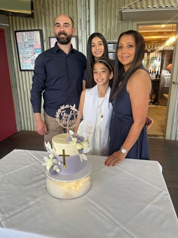Moncy and Annie with Sienna and Chiara on Sienna’s 1st communion.